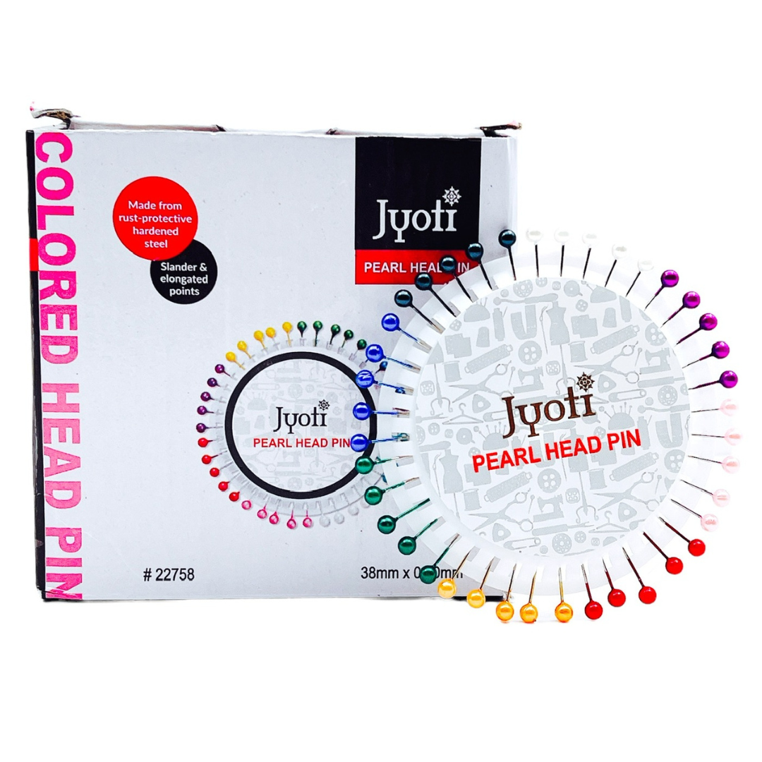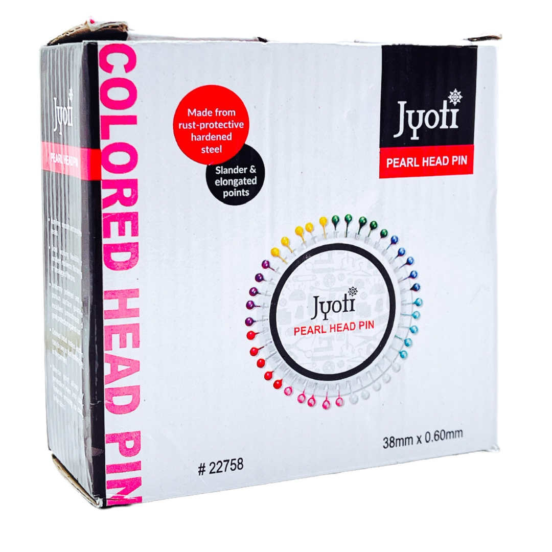 Jyoti pearl head pins are a type of sewing pin that is commonly used in dressmaking, tailoring, and other fabric-related crafts. These pins are named for their distinctive round heads, which are often made of plastic or metal and resemble small pearls.