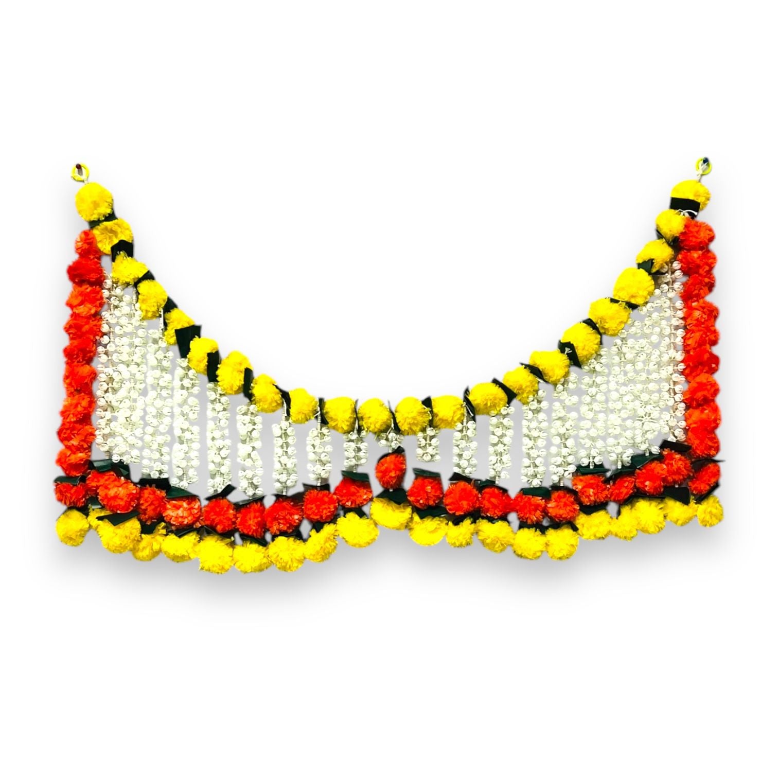 The Flower Hanging Toran holds cultural and religious significance, symbolizing a warm welcome and good luck. It is commonly used during celebrations such as weddings, festivals, and religious ceremonies. The choice of flowers and colors may vary depending on the occasion and cultural preferences.