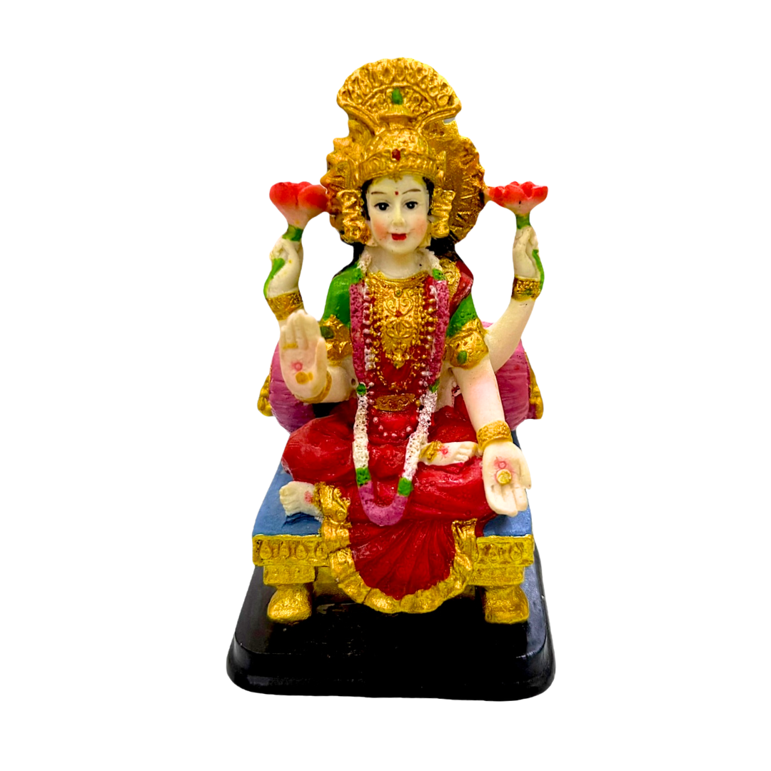Bring home divine blessings with this Goddess Lakshmi Idol – Seated on Throne with Lotus, beautifully crafted to symbolize wealth, purity, and prosperity. Depicting Lakshmi Mata gracefully seated on a detailed throne holding a lotus, this compact idol is perfect for pooja rooms, desks, or gifting during auspicious occasions.