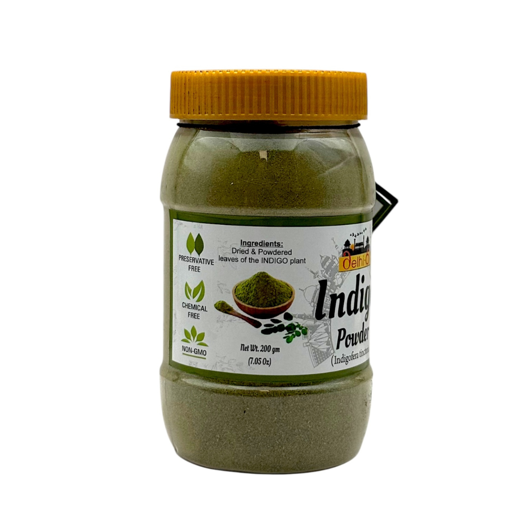 Delhi 6 Ayurvedic Indigo Powder for Rich Black Hair | 100% Natural | Chemical Free | Non-GMO | Preservative Free 200g- 9351235053042