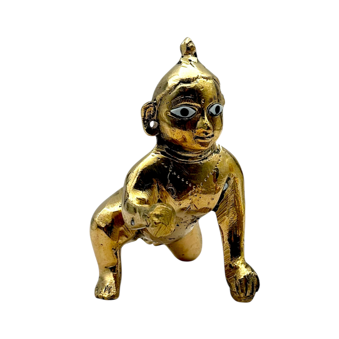Laddu Gopal Brass Large Idol | Design No. 3 | Premium Finish | Size: 4" x 3.5"