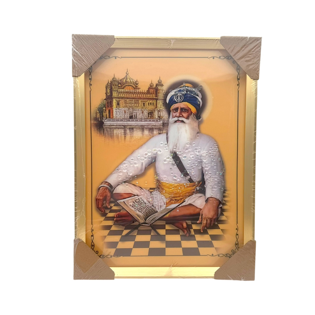 Product Name: Baba Deep Singh Ji with Golden Temple – Spiritual Photo Frame