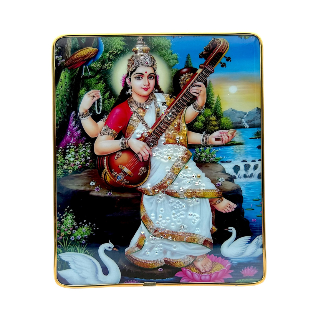 Goddess Saraswati Photo Frame – Divine Art Print | 20*24cm (8"*9.5") | Decorative Painting JC2024B-1 With Support - 9351235056777