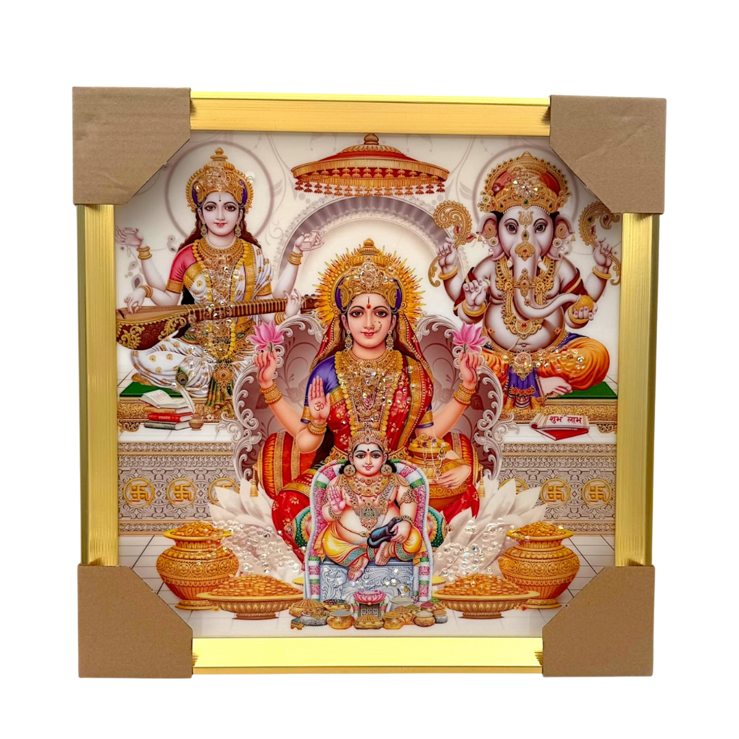 Product Name: Lakshmi Ganesh Saraswati with Kuber Ji Photo Frame