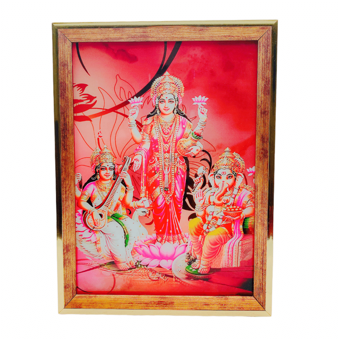 A Laxmi Ganesh & Saraswati Photo Frame is a sacred and artistic item that combines the images of three revered deities in Hinduism: Goddess Lakshmi, Lord Ganesha, and Goddess Saraswati. This unique frame is a symbol of prosperity, wisdom, and auspicious beginnings, making it a popular choice for religious and cultural purposes.