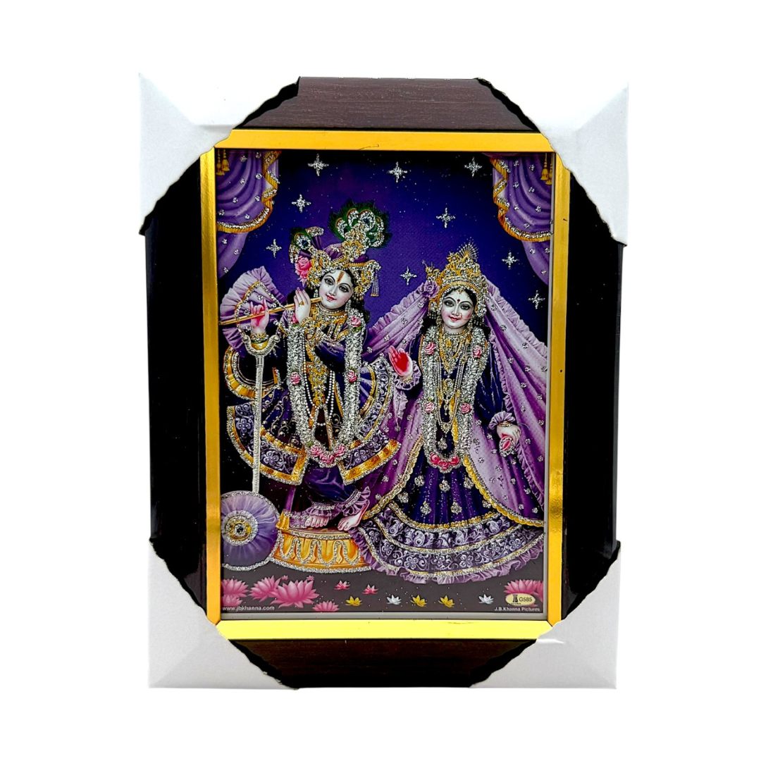 ✅ Vibrant image of Radha Krishna in a 5" x 7" display frame
