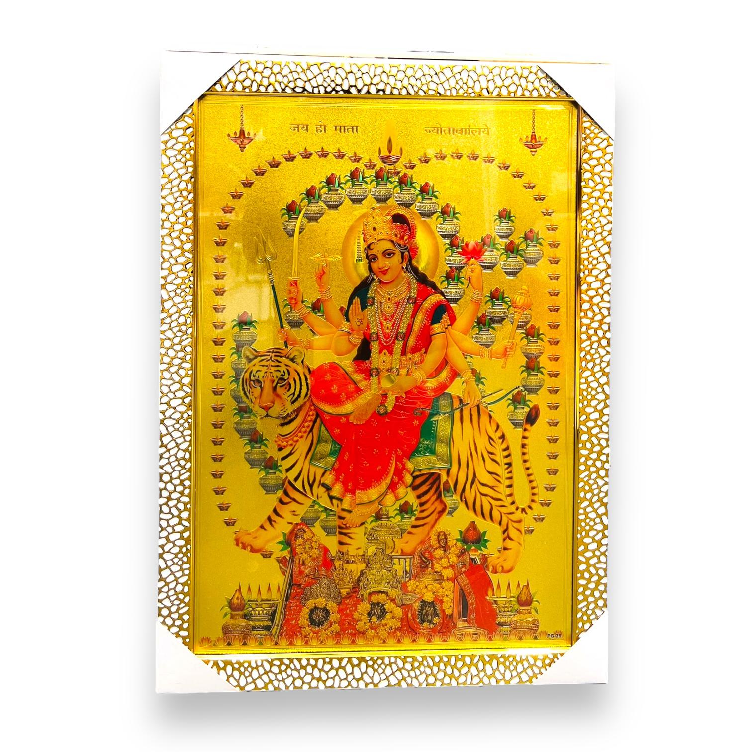 Photo Frame Durga Mata/ Sherawali Mata BA- (SIZE- 16x 24)- Golden- 9351235048994