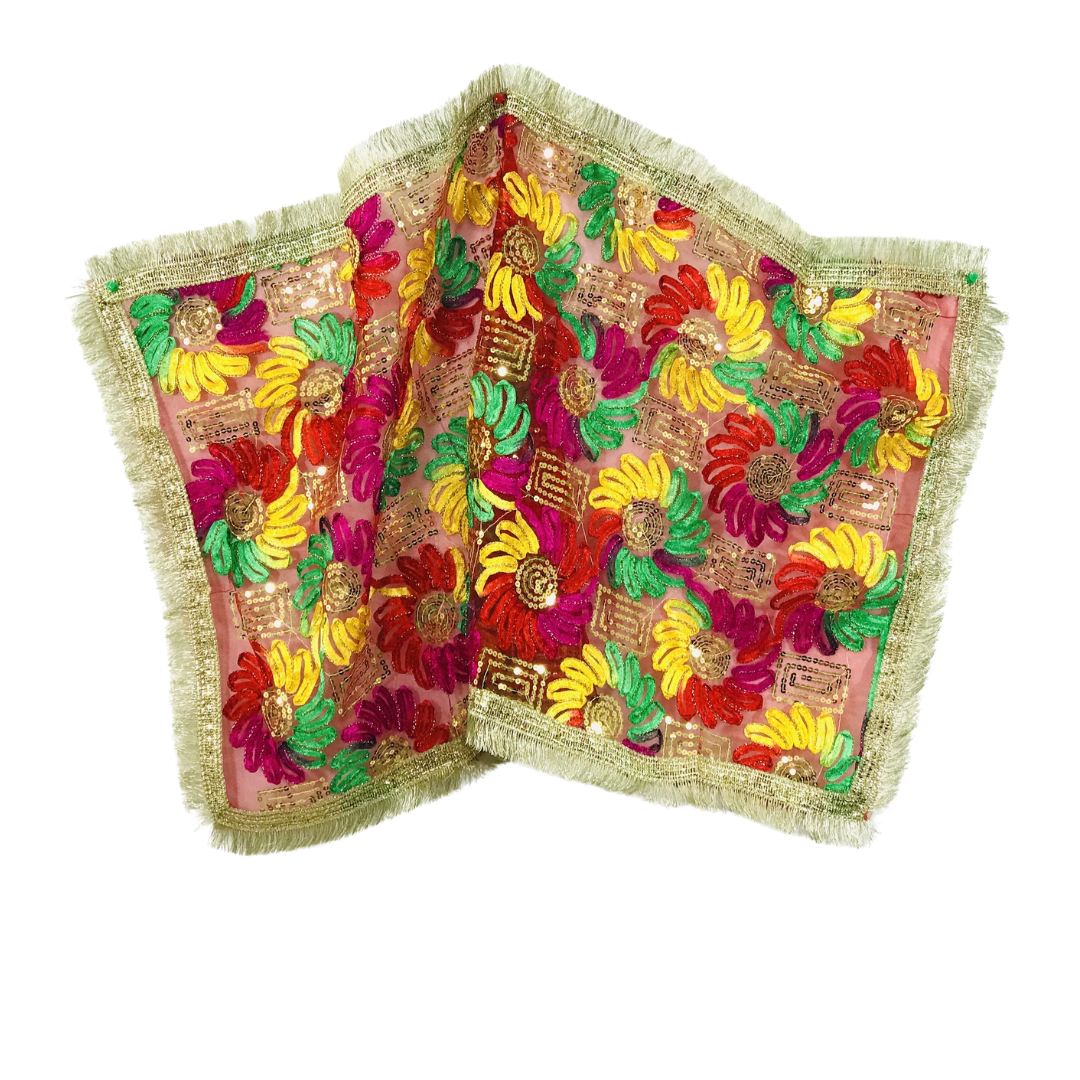 Mata Ki Chunri is a powerful Indian tradition. It's offered to the goddess during worship as a way of showing respect. It's beautifully decorated, so you're sure to get plenty of compliments when you wear it!