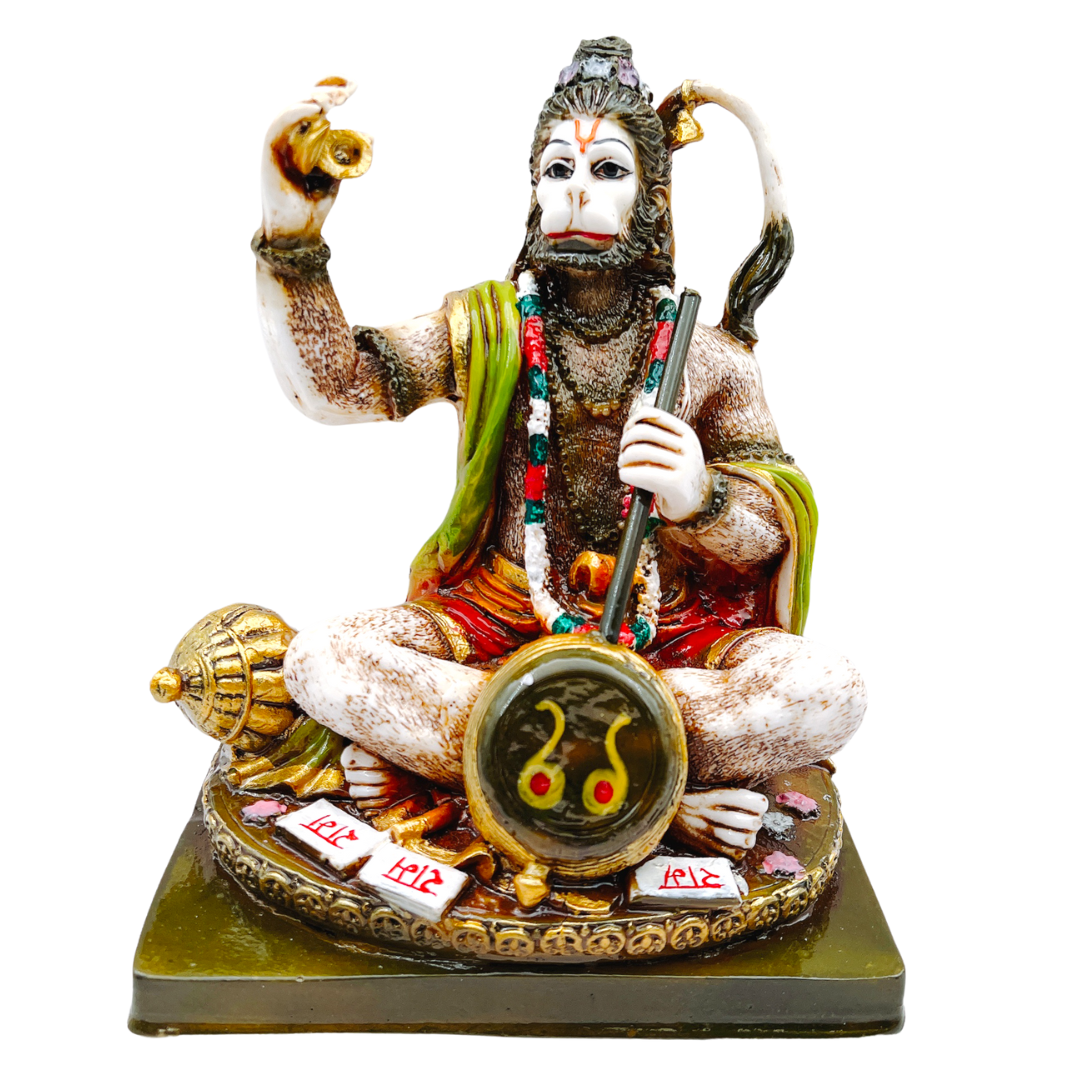 The Bhajan Hanuman idol is a beautifully crafted piece of art. This traditional-looking statue was hand-carved by skilled craftsmen and features Hanuman in his well-known pose, singing Bhajan. The intricate detailing gives it an authentic rustic look which will make this idol the perfect addition to any home or temple. This Hanuman idol is in the Bhajan position, which means he is singing bhajan. The traditional rustic look of this idol makes it a great addition to any home or office. Many people go to temples and pray but there are those who don't have the time or money. This Hanuman Idol is a blessing in disguise. It's beautifully made, handcrafted, and traditional yet rustic, so you can keep it at home as well. Beautifully handmade, this Hanuman idol is made from clay and painted with organic colors. It is traditional but also has a rustic look which makes it a great addition to any home or office. A beautiful Hanuman idol in a traditional, rustic style. He is said to be giving blessings and looking at you with kindness. This idol is sure to bring good luck into your life!