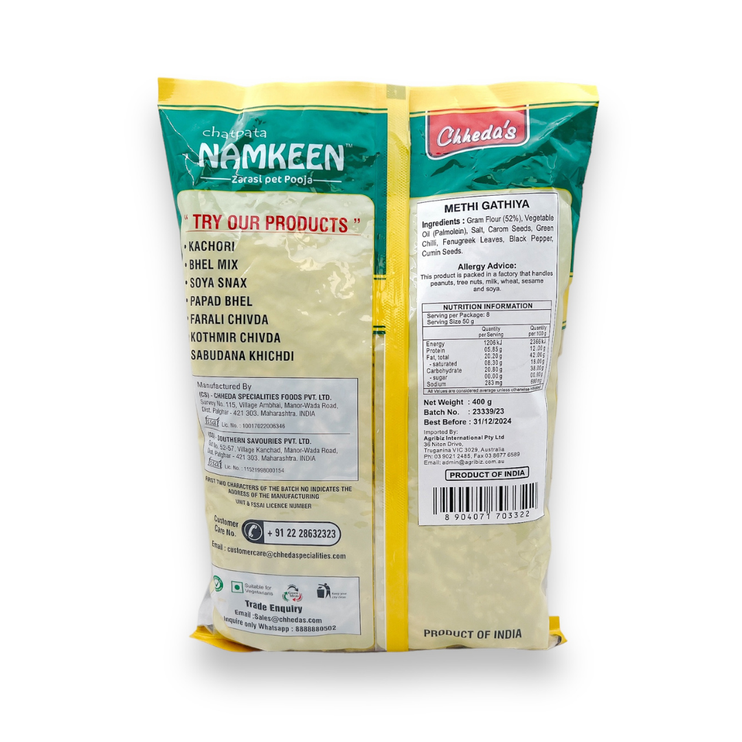 Chhedas Methi Ghatiya MIxture/ Chic Pea Flour Noodles Snack 400Gm