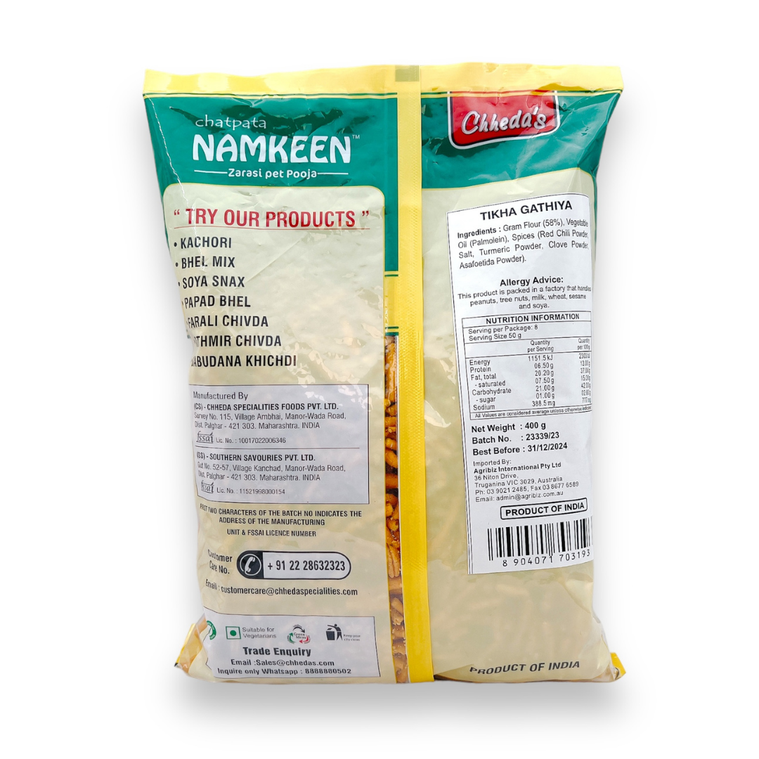 Chhedas Tikha Gathiya/ Hot Chic Pea Mixture Snack 400gm