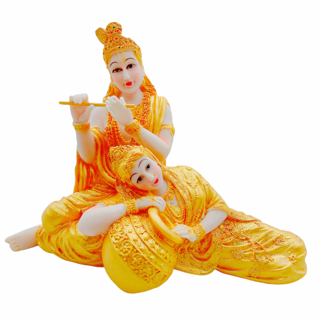 The golden colour Radha Krishna Idol is a beautifully made idol from stone marble, it is elegantly carved and painted. Radha Krishna is considered the epitome of true and selfless love in Indian culture. This piece of art will bring joy to your home or garden. Radha Krishna Idol is a beautiful representation of two Hindu gods, Radha and Krishna. Bring home the Radha Krishna Idol from India. This iconic Indian idol is made of stone marble and beautifully handcrafted. It's a reminder of eternal love.