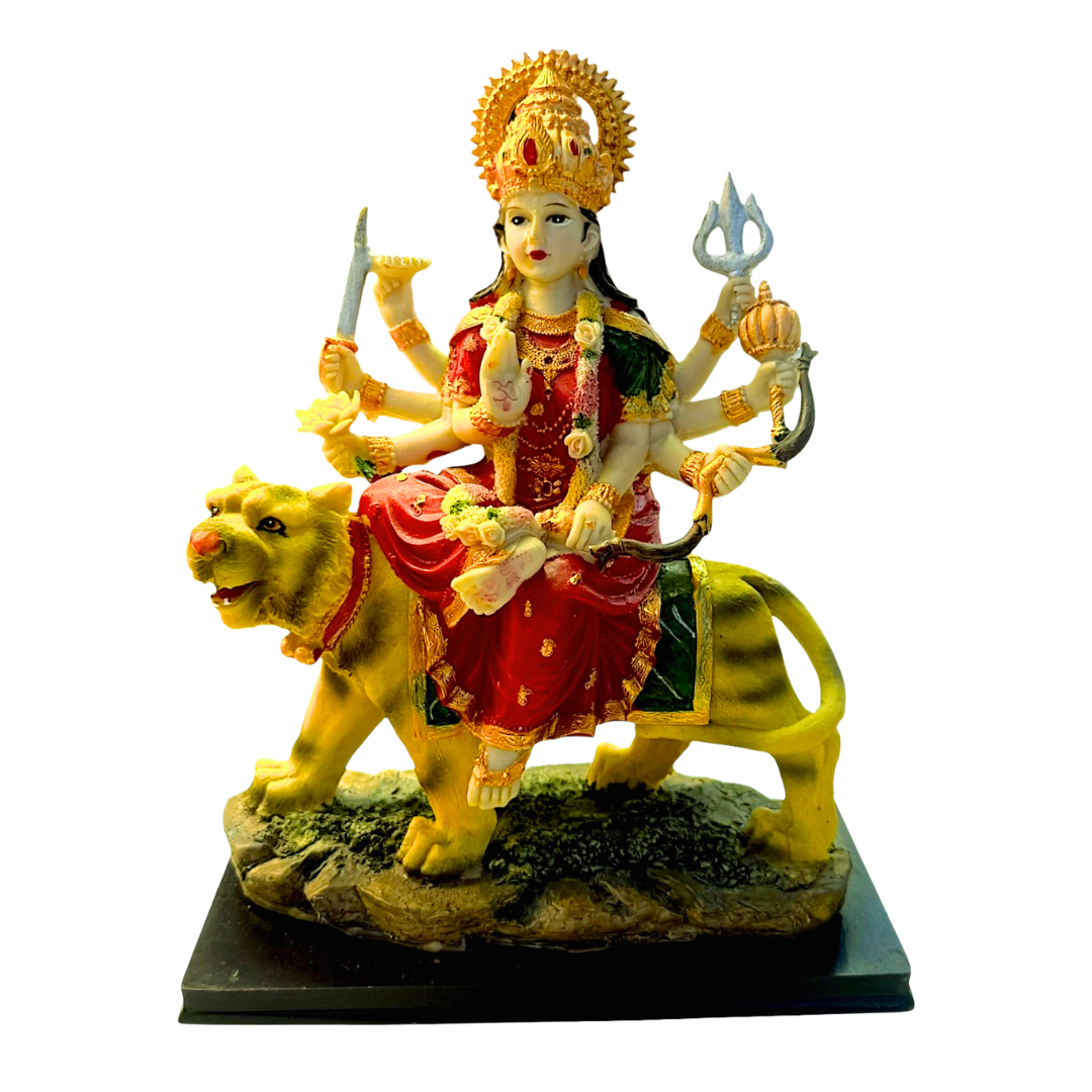 Celebrate the power and divine energy of Maa Durga with this majestic idol, featuring the goddess seated on her lion in a powerful stance. A sacred symbol of protection, courage, and victory over evil, this idol is perfect for pooja rooms, temples, and festive décor.