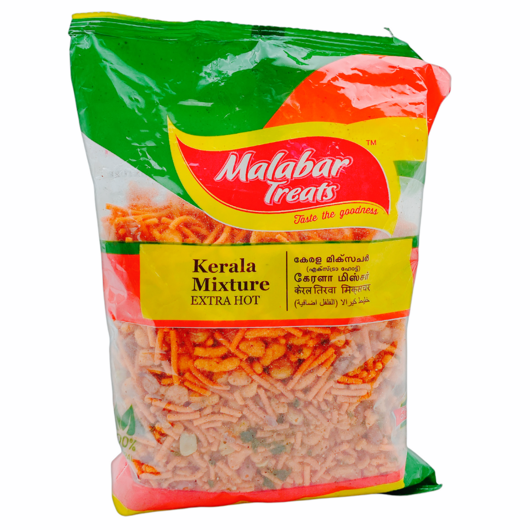 Kerala Mixture Extra Hot typically refers to a savory snack mix made from a combination of ingredients such as roasted or fried nuts, lentils, rice flakes, and spices. These ingredients are often seasoned with a variety of spices and herbs, including curry leaves, mustard seeds, red chili powder, and salt. The Mixture Extra Hot is known for its crunchy texture and flavorful taste, making it a popular choice for snacking.