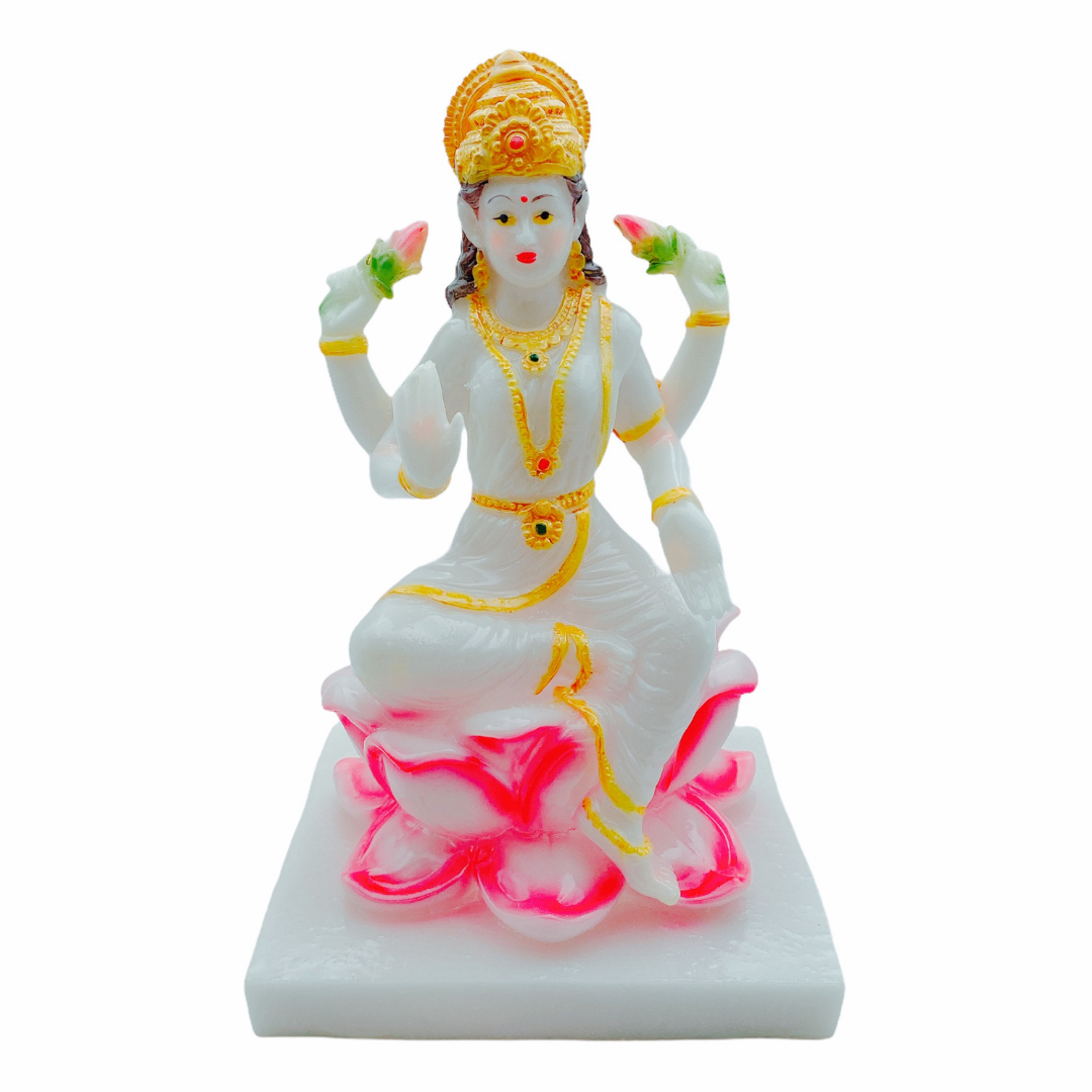 This sitting Marble Look Laxmi idol is made of pure marble, which gives it a natural texture and a warm glow. It’s multi-colored too, which makes it feel vibrant. Laxmi represents wealth, prosperity, creativity, and auspiciousness. This Laxmi clay Idol will remind you of good luck, wealth and prosperity every time you see it. It is perfect as a part of any altar decoration or in-house worship room. The idol represents wealth, prosperity, happiness, abundance and good luck. The statue of Laxmi is a beautiful representation of the Hindu goddess. The statue is made from marble , painted multi-colored.